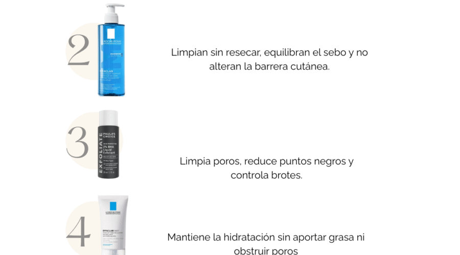 Productos recomendados para una rutina de skincare de noche para piel grasa